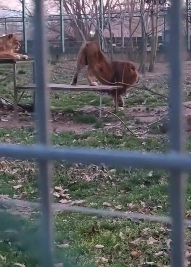 - "The video depicts two lions in an enclosure, as seen through a metal fence" by FM-bNclB3, licensed under CC BY 4.0