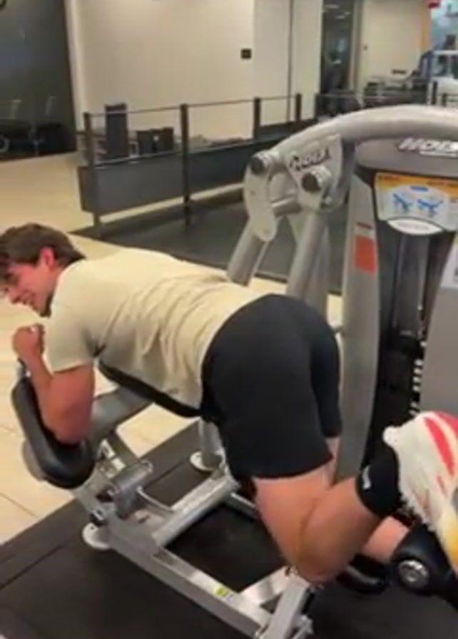 A man lies face down on a Hoist hamstring curl machine at a gym