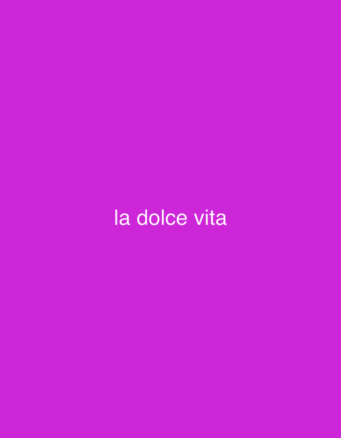 The image displays a solid magenta background. Centered on this background, the phrase "la dolce vita" is rendered in white, lowercase, sans-serif typography. No people, discernible subjects, physical objects, actions, or interactions are present. The environment is a two-dimensional graphic display of text on a monochrome field. No physical location within the city of La Spezia, Italy, or any other geographical area, can be determined from the content of this image.
