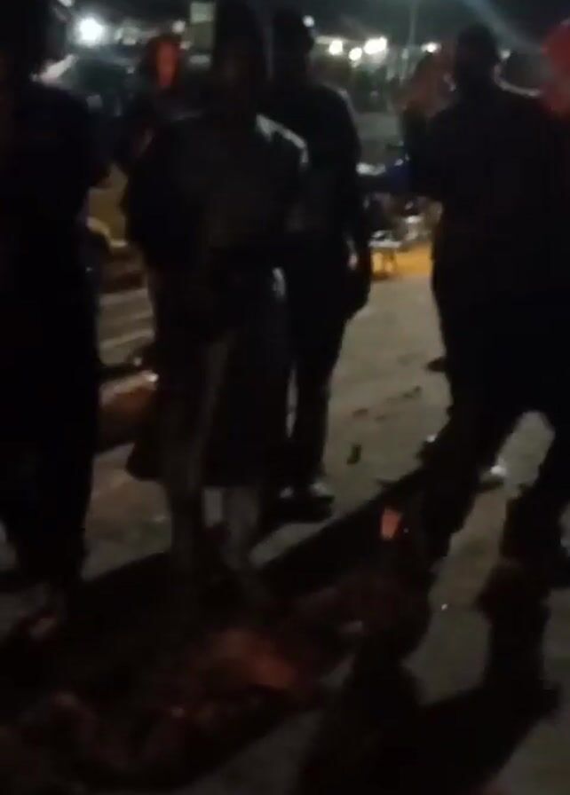 At night, a group of people are gathered outdoors on a street, illuminated by distant streetlights. The scene is dark and the individuals are mostly silhouetted, making specific details difficult to discern. The ground appears uneven, possibly asphalt, with shadows cast by the people and nearby objects. One man stands out slightly in a white or light-colored tunic. The overall impression is of a gathering in a public space under nighttime conditions. The watermark "Infinix HOT 12 Play" is visible in the lower left corner of the frame.