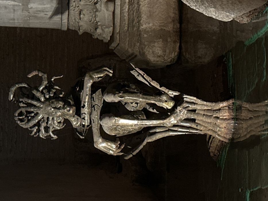 - "The image displays a contemporary metallic sculpture of Medusa, centrally positioned in a dimly lit, subterranean environment" by FM-nWB3x2, licensed under CC BY 4.0