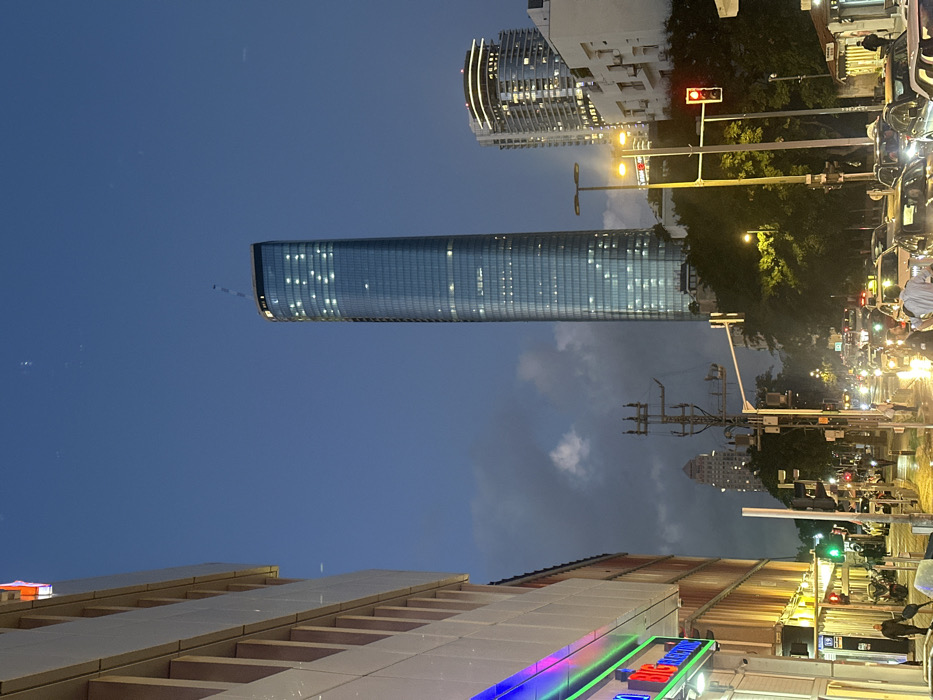 - "A nighttime urban scene reveals a towering skyscraper with illuminated windows against a darkening blue sky" by FM-TTjlL2, licensed under CC BY 4.0
