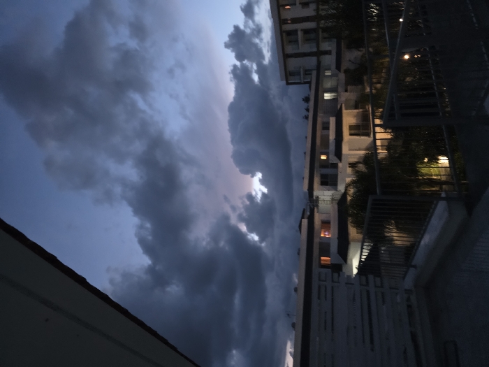 - "An elevated view captures a residential scene in Trachoni, Cyprus, at dusk or dawn, under a sky largely obscured by dark, heavy clouds with lighter blue and subtle purple hues near the horizon" by FM-nLZA12, licensed under CC BY 4.0