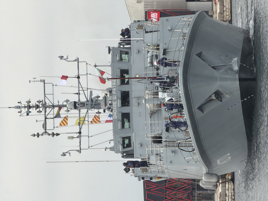 - "A grey naval vessel, identified by the inscription "ONOARE SI PATRIE" (Honor and Country) on its bridge and partially visible hull number "178" on its bow, is depicted afloat in the port of Varna, Bulgaria" by FM-nfS452, licensed under CC BY 4.0