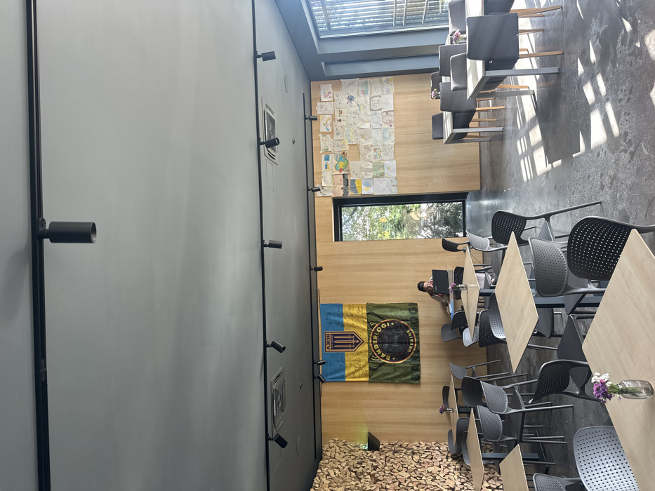 The image displays the interior of an establishment, likely a cafe or public space, situated in Vytachiv, Ukraine