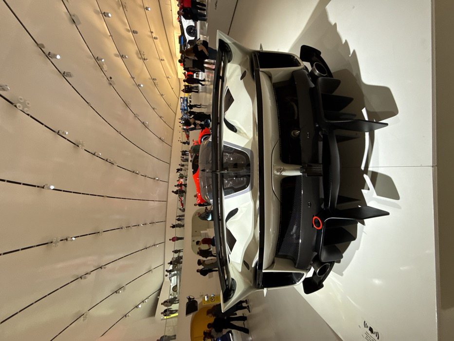 - "This image depicts the rear of a white, high-performance vehicle, possibly a Ferrari track-focused model, displayed on a white platform within the Museo Enzo Ferrari in Modena, Italy" by FM-UaKXZ2, licensed under CC BY 4.0