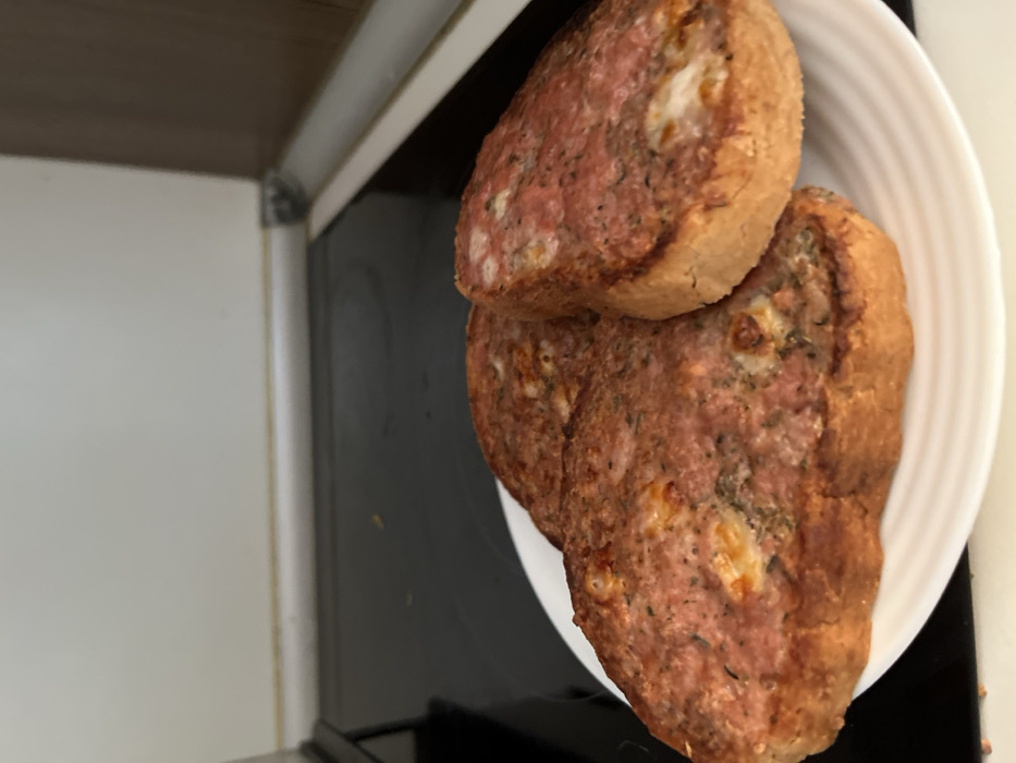 - "Three slices of toasted bread topped with a cooked, reddish-pink ground meat or sausage mixture are presented on a white, ridged ceramic plate" by FM-m1kZq2, licensed under CC BY 4.0