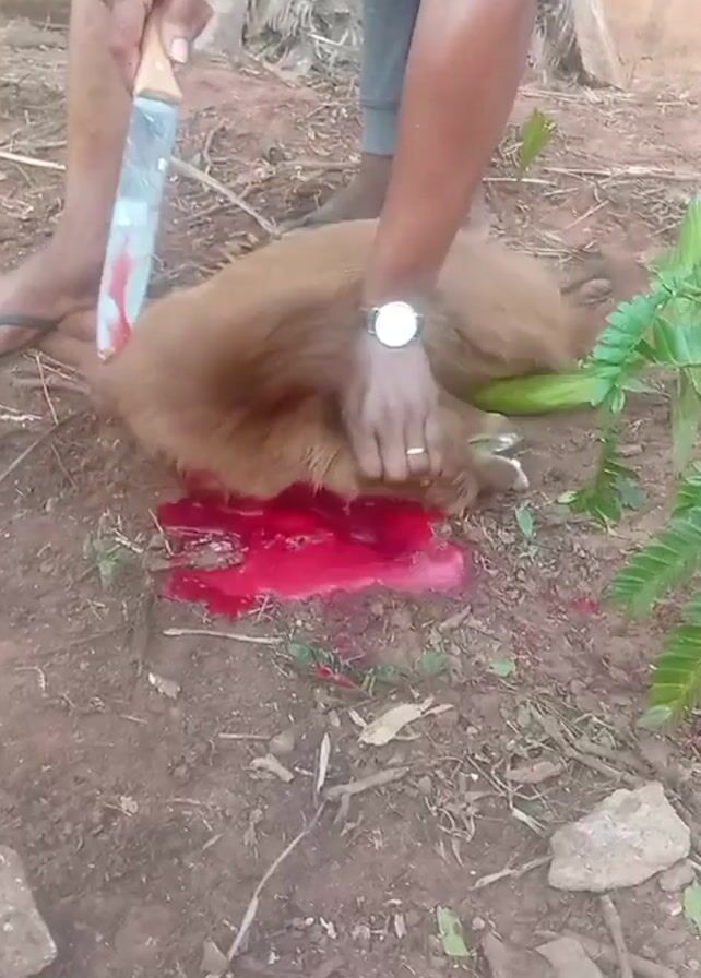 - "person slaughtering a brown goat outdoors" by FM-2XEJh2, licensed under CC BY 4.0