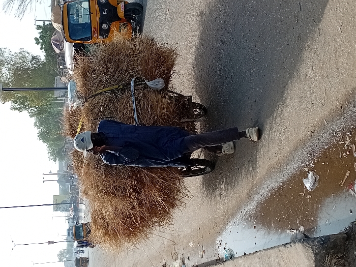 - "An adult male is observed walking from right to left on a paved road in Rijiyar Zaki, Nigeria, pushing a two-wheeled handcart" by FM-TAum93, licensed under CC BY 4.0