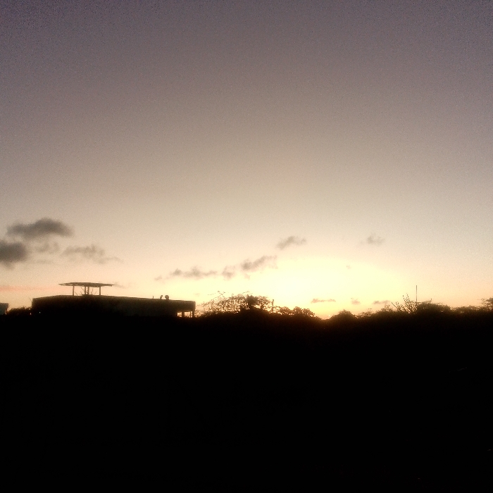 A low-angle shot captures a horizon line silhouetted against a dusky sky