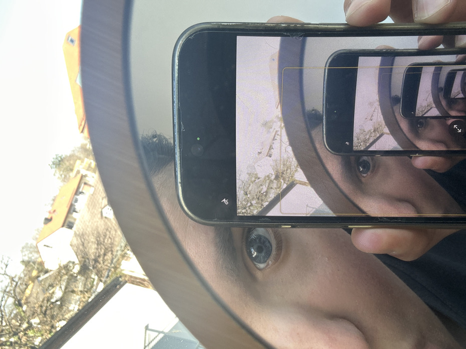 - "This image captures a recursive reflection taken in Grünwald, Germany, depicting a person's face and a smartphone within a reflective surface" by FM-IZBAo2, licensed under CC BY 4.0