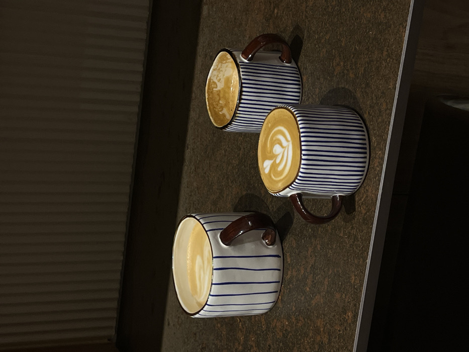 - "The image depicts three ceramic coffee mugs arranged on a dark, mottled countertop in an interior setting, identified as being in Madrid, Spain" by FM-l2qUu2, licensed under CC BY 4.0