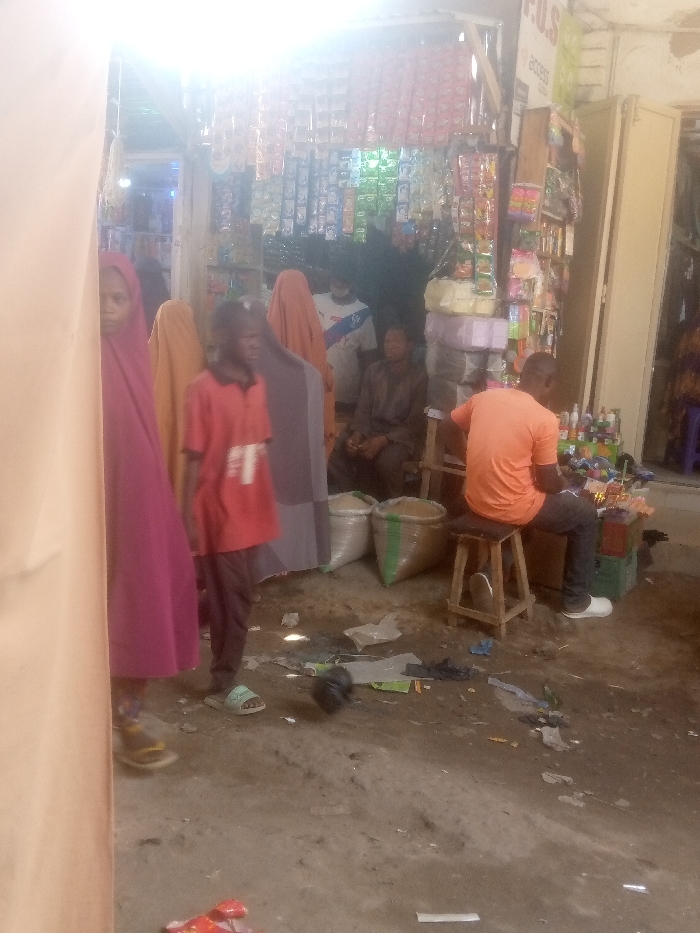 - "This image depicts a bustling market or street scene in Gombe, Nigeria, focused on the entrance of a shop or stall" by FM-ER8sG3, licensed under CC BY 4.0