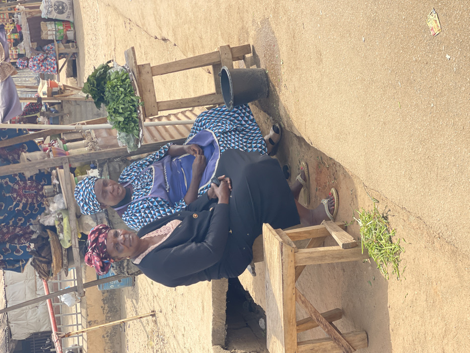 The image portrays an outdoor market scene in Chikaji, Nigeria, under bright daylight