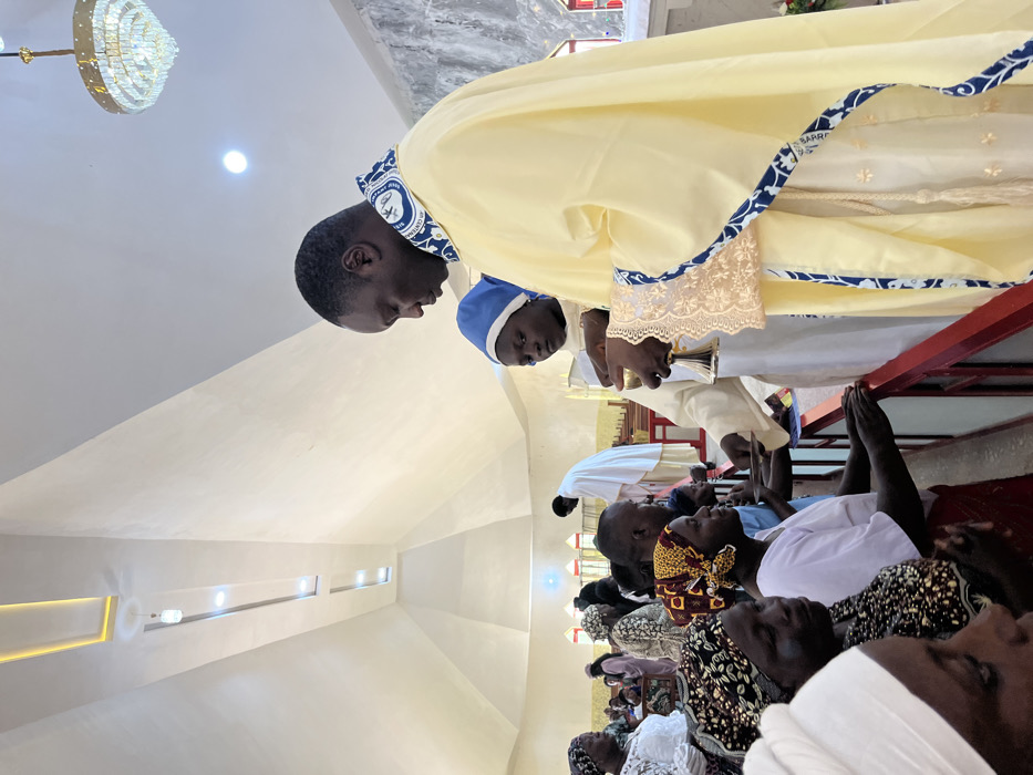 This image captures a communion service inside a church in Unknown, Nigeria