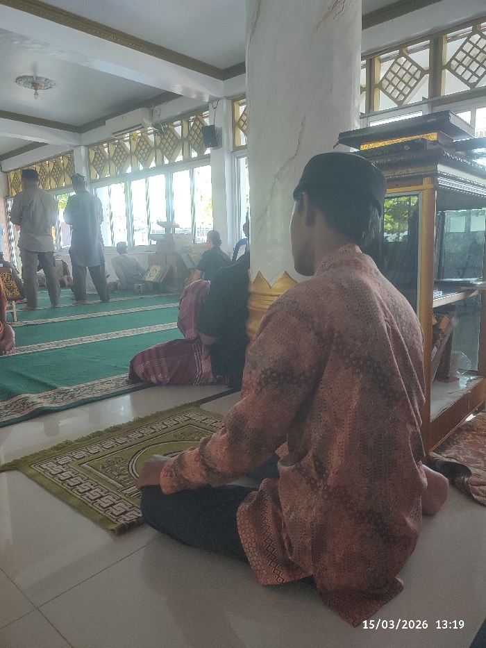 The image depicts an interior scene inside a mosque in Lhokseumawe, Indonesia