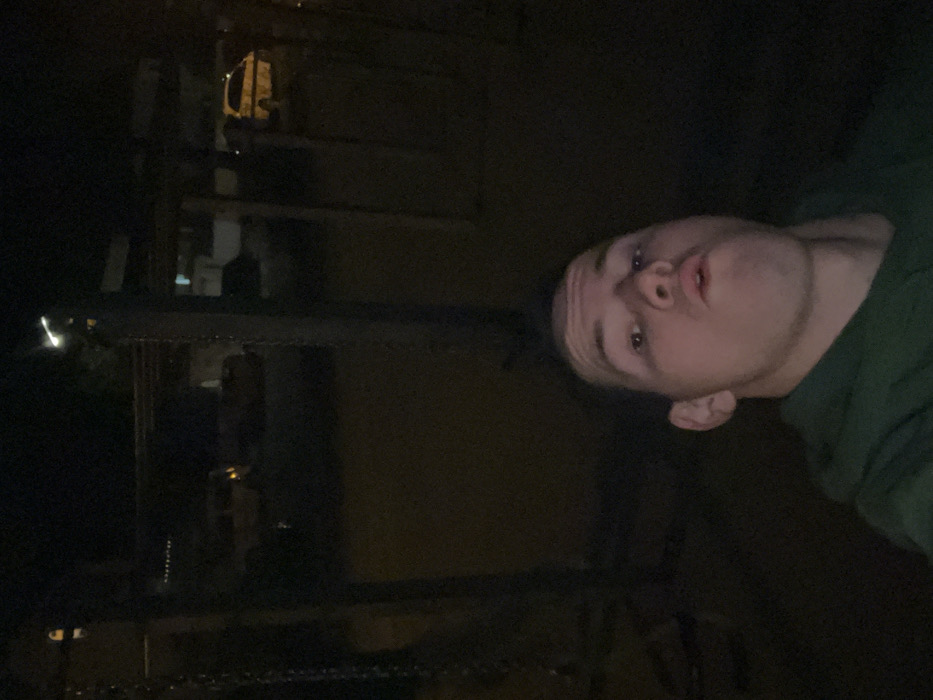 This image depicts an outdoor night scene in Memmingen, Germany. The foreground features a male individual positioned centrally, looking upwards directly at the camera. He wears a dark green hooded sweatshirt, and his mouth is slightly open in a circular shape. The background is dimly lit, revealing a playground structure with two vertical posts and hanging chains, indicative of a swing set. Beyond this, multiple vehicles are parked on what appears to be a street or parking area. A light-colored compact car, possibly yellow, with its front visible, is parked on the right side of the background. Other darker vehicles are less distinctly visible. Faint artificial light sources are present overhead and in the distance. The ground appears dark and unpaved. No other individuals or discernible interactions are present.