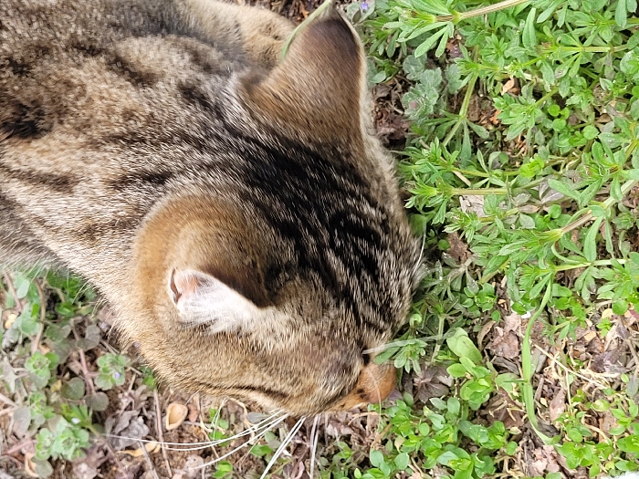 - "The scene, located in Lukovit, Bulgaria, depicts the top-down view of a tabby cat" by FM-laGG22, licensed under CC BY 4.0