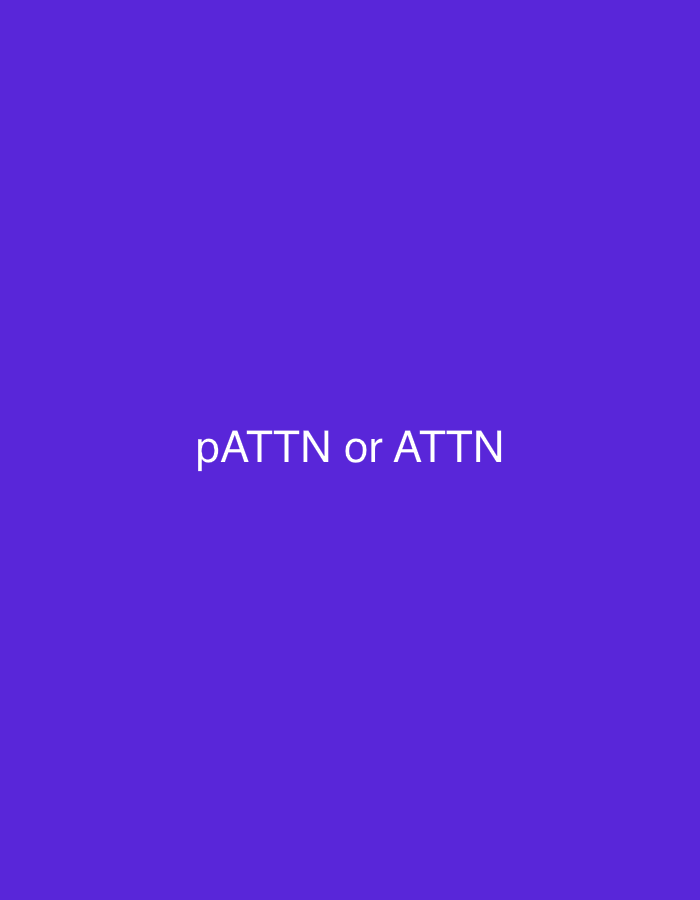 The image displays a uniform, solid purple background. Centered horizontally on this background is white, sans-serif text that reads "pATTN or ATTN". There are no discernible people, subjects, physical objects beyond the text, actions, interactions, or environmental features depicted. The visual content provides no indicators for a specific geographical location, including the city of Interlomas, Mexico.