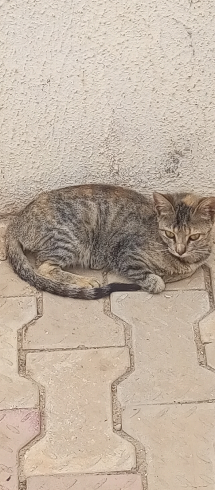 - "A tabby cat rests on interlocking pavers against a textured wall" by FM-NFvRh2, licensed under CC BY 4.0