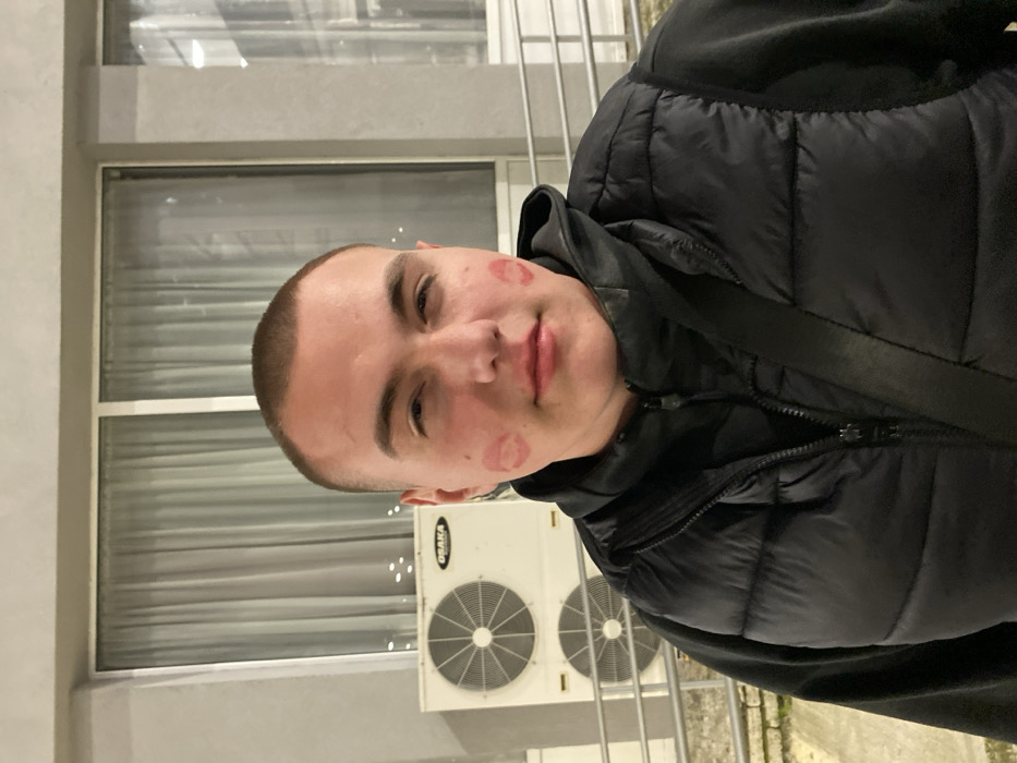 A young adult male subject is depicted facing forward in an outdoor setting in Shumen, Bulgaria