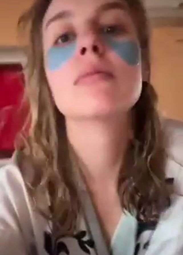 A woman with wet, wavy brown hair is centered in a close-up shot
