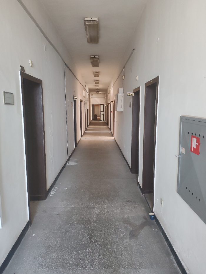 - "A long, narrow, and empty institutional hallway is depicted, located within a building in Radomir, Bulgaria" by FM-4SveV2, licensed under CC BY 4.0
