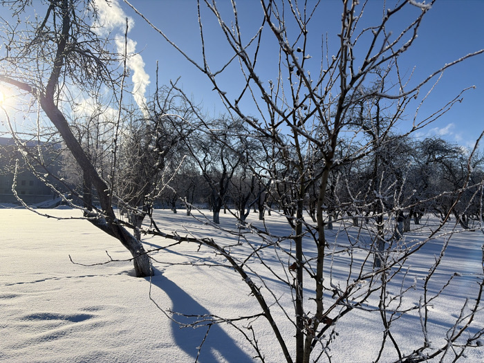 - "The image depicts a snow-covered orchard in Kronstadt, Russia, under a clear blue winter sky" by FM-Opnib2, licensed under CC BY 4.0