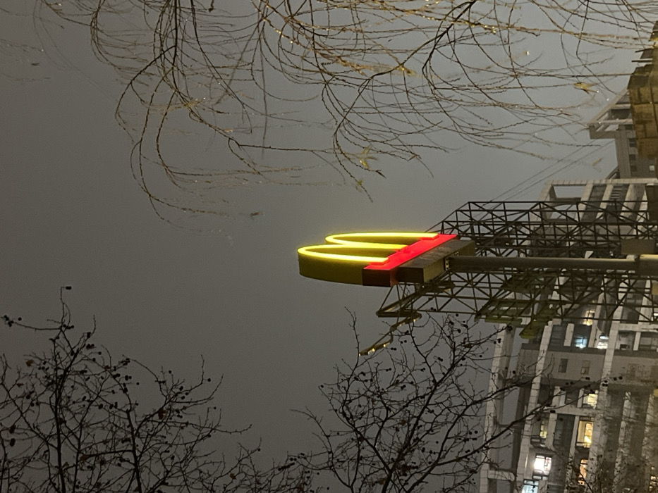 - "The scene, captured at night in Yanqiao, China, presents an illuminated McDonald's sign positioned prominently against an overcast sky" by FM-vtSbX2, licensed under CC BY 4.0