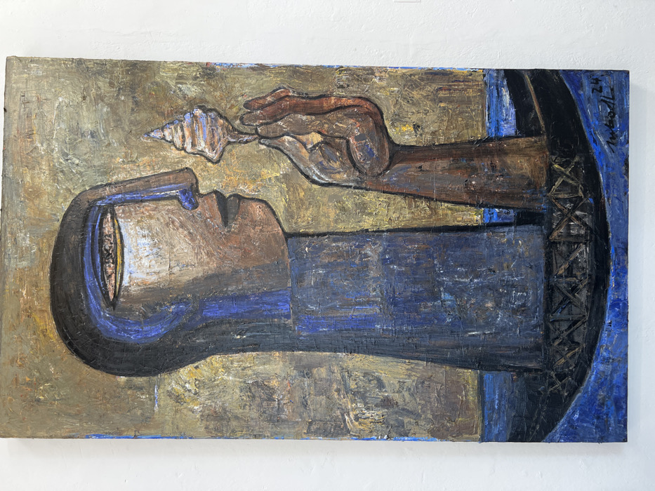 - "The image depicts a painting of a stylized human figure holding a seashell" by FM-7y8Ft1, licensed under CC BY 4.0