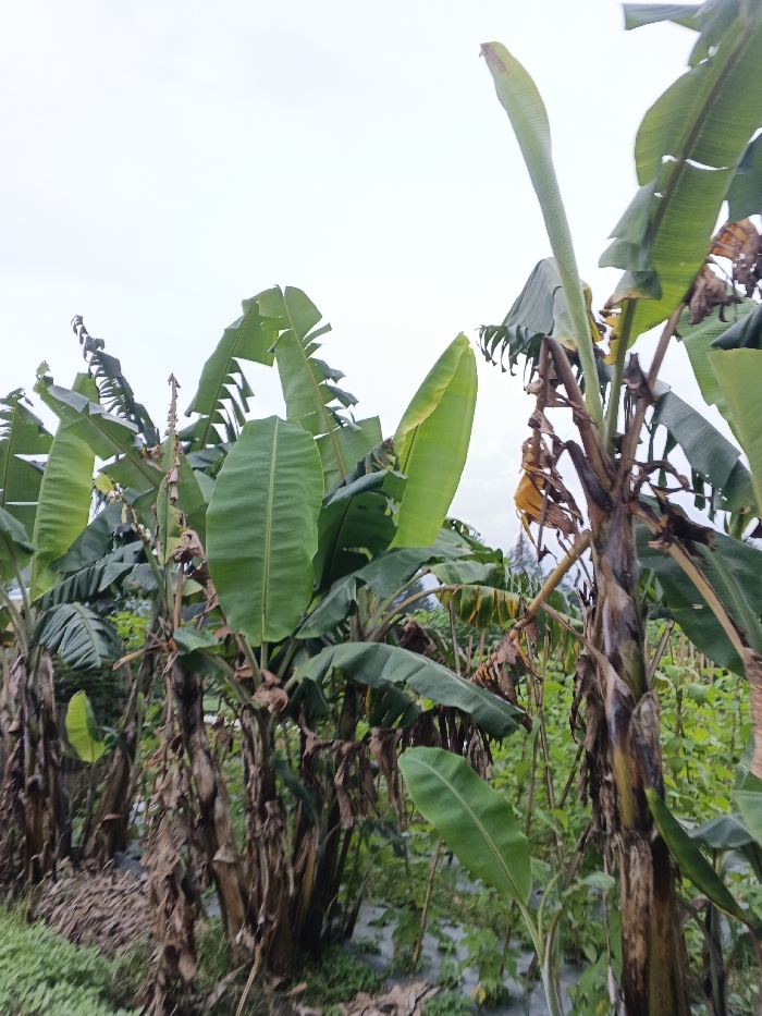 - "This image presents a cultivated outdoor scene in Kabiufa, Papua New Guinea, primarily featuring a dense grouping of mature banana plants (Musa species) under an overcast, light grey sky" by FM-lj4nr2, licensed under CC BY 4.0