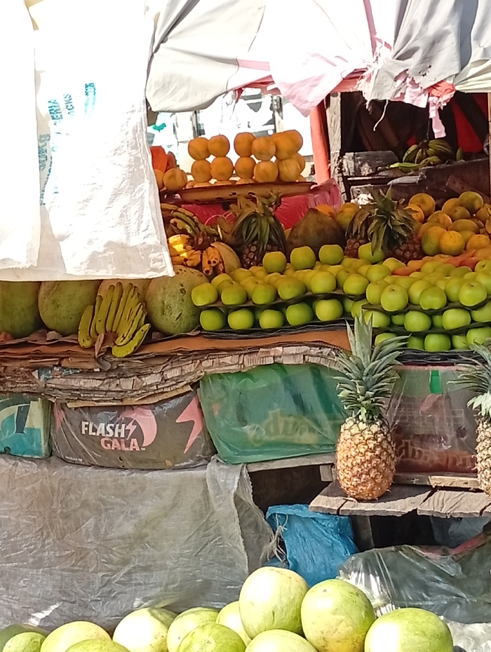 - "The image depicts a vibrant fruit stall in a market within Lokoja, Nigeria, observed during daytime under a makeshift canopy" by FM-EEWgo2, licensed under CC BY 4.0
