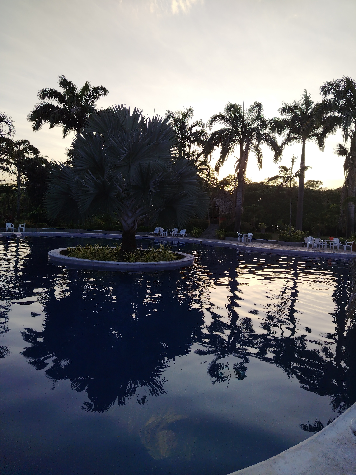 - "swimming pool surrounded by palm trees, reflecting the sky in its water" by FM-rVyQI3, licensed under CC BY 4.0