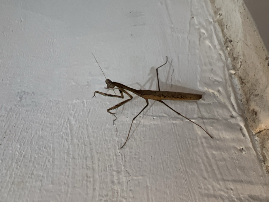 - "A brown praying mantis clings to a textured white wall" by FM-xgQP92, licensed under CC BY 4.0