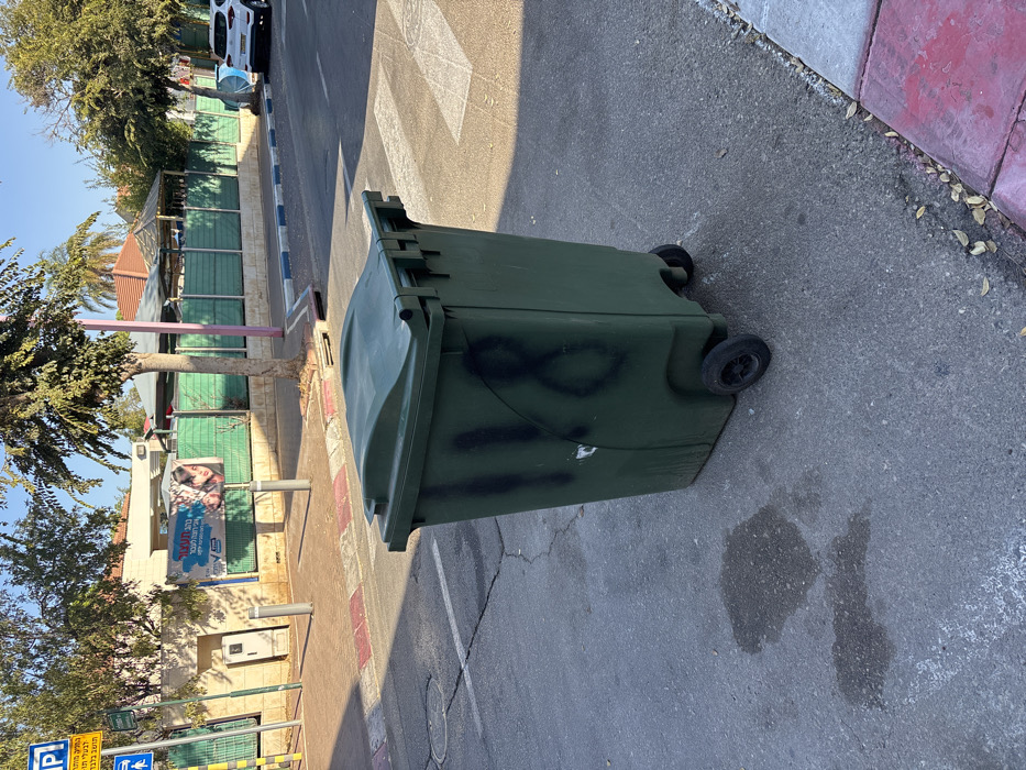 - "A dark green, wheeled waste container, marked with black spray-painted numbers "118" on its side, is positioned on an asphalt road in Beit Dagan, Israel" by FM-tcIO92, licensed under CC BY 4.0