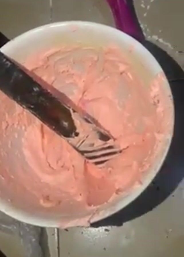 - "A person spreads pink frosting on a square cake on a white cake plate, using a blue, serrated spatula" by FM-BX0Ee2, licensed under CC BY 4.0
