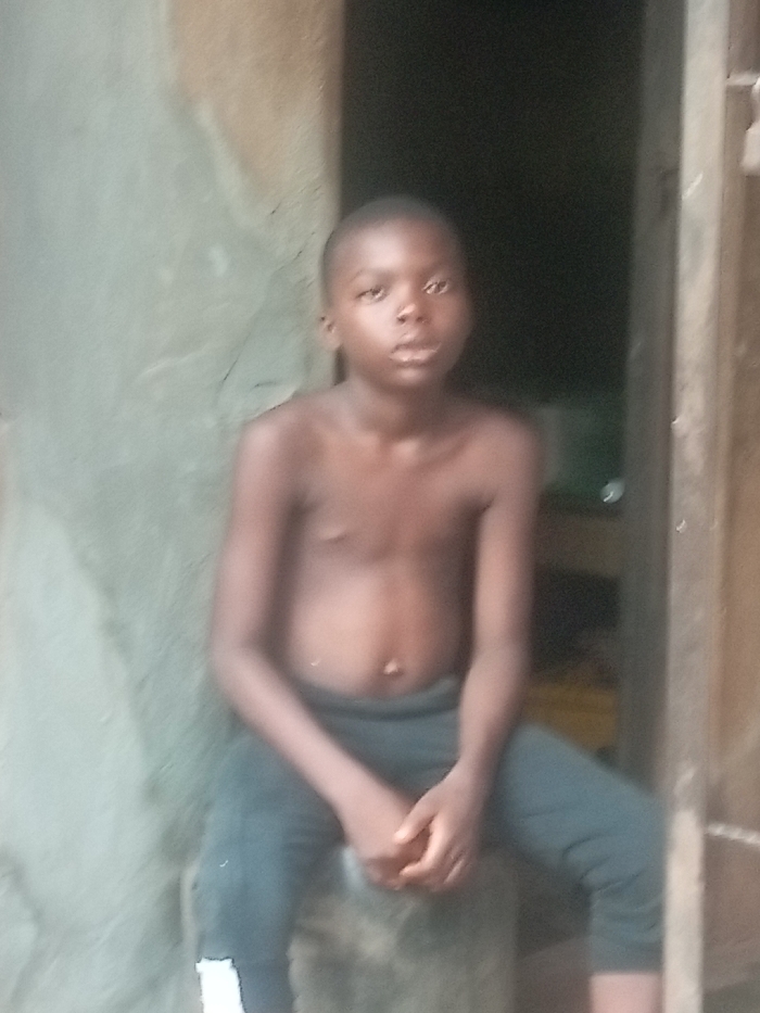 In Ogidi, Nigeria, a young male with dark skin and short dark hair is seated, facing forward