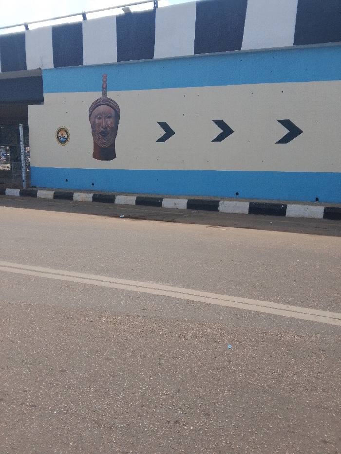 - "The image depicts an urban roadside scene in Oshogbo, Nigeria, featuring a painted retaining wall beneath a bridge or overpass" by FM-JkNoI2, licensed under CC BY 4.0