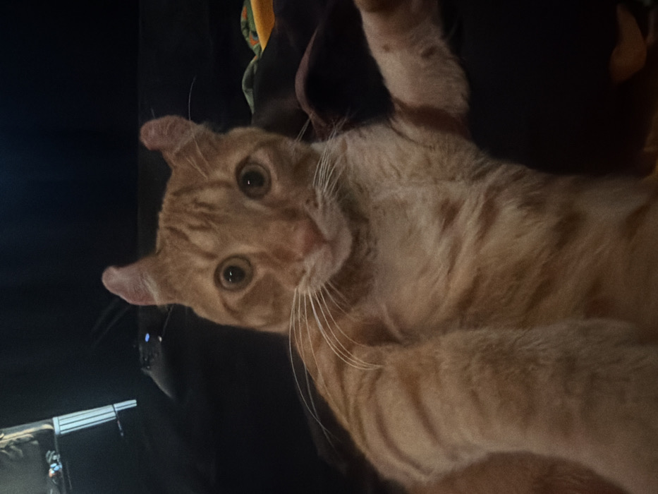 - "An orange tabby cat, lying on its back, gazes directly at the viewer" by FM-FHe0a2, licensed under CC BY 4.0
