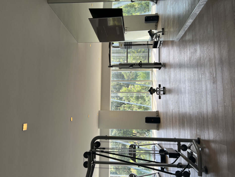 - "The image displays an unoccupied, well-lit modern gym interior in Mexico City, adjacent to a heavily wooded area visible through extensive floor-to-ceiling windows" by FM-oyPTl1, licensed under CC BY 4.0