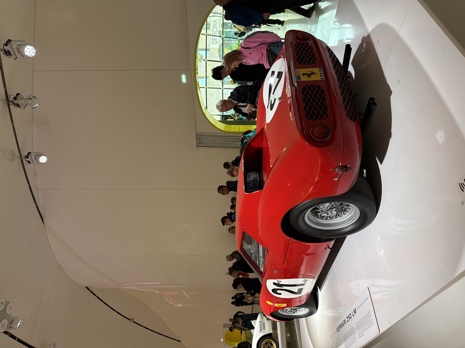 The image displays the interior of the Museo Enzo Ferrari in Modena, Italy