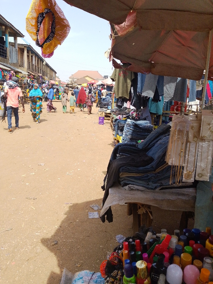 - "The image depicts a bustling outdoor market street in Bukuru, Nigeria, under a bright, clear sky" by FM-vJLpO2, licensed under CC BY 4.0