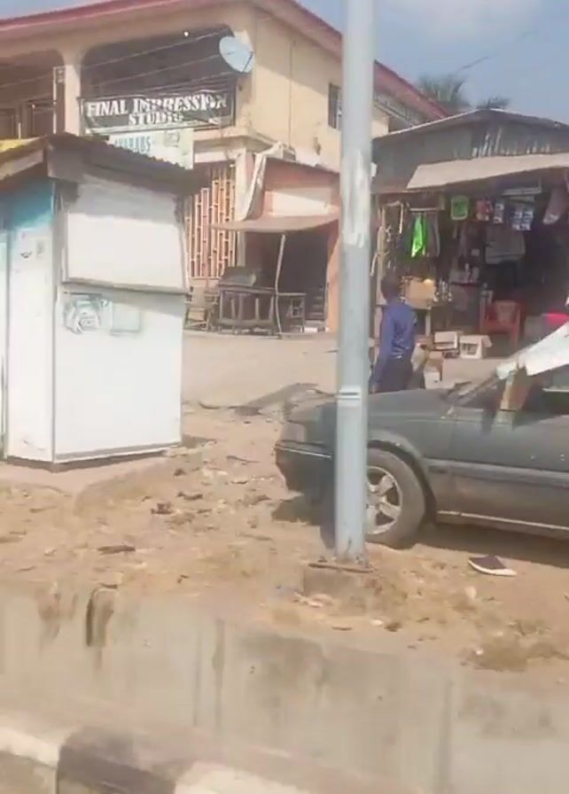 The video appears to be shot from a moving vehicle, showcasing a street scene