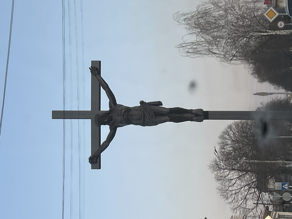 - "A large, dark-toned statue of Jesus Christ on a cross is centrally positioned against a clear, light blue sky in Elin Pelin, Bulgaria" by FM-MRBhH3, licensed under CC BY 4.0