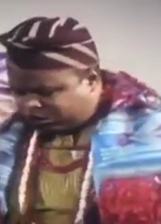 A man is standing in front of a wall. He is wearing a traditional headdress, a multi-colored shawl, and a necklace with red beads. Behind him, there is a framed picture on the wall that looks like an advertisement for the year 2020. Then, the screen goes black with white text that reads, "This was what made me rich! This was what made me view."