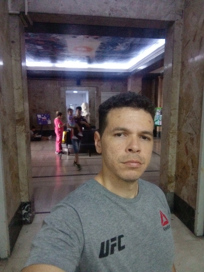 - "A man wearing a gray UFC shirt takes a selfie in a marble-columned building" by FM-kzA8r2, licensed under CC BY 4.0