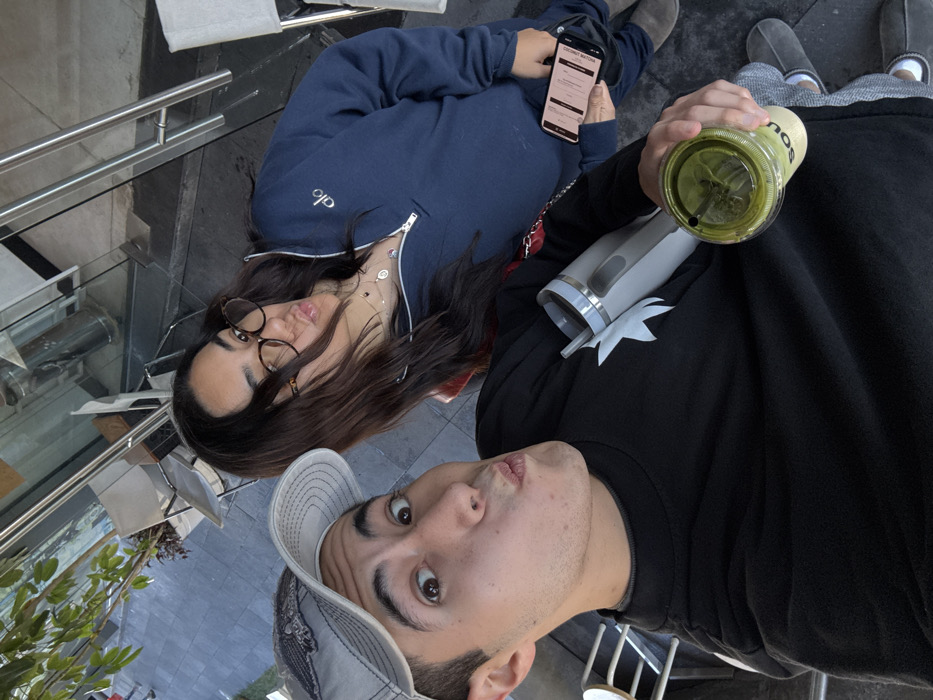 Two young adults are captured in a selfie-style image outdoors in Puebla City, Mexico