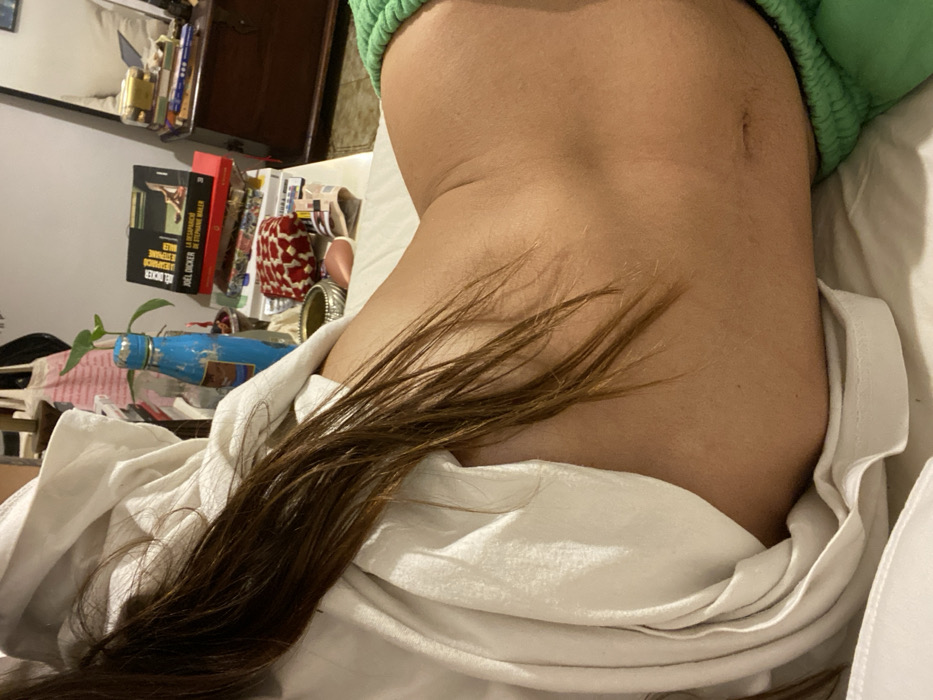 - "The image displays a person lying on their right side on a white surface, presumably a bed" by FM-fIJoy1, licensed under CC BY 4.0