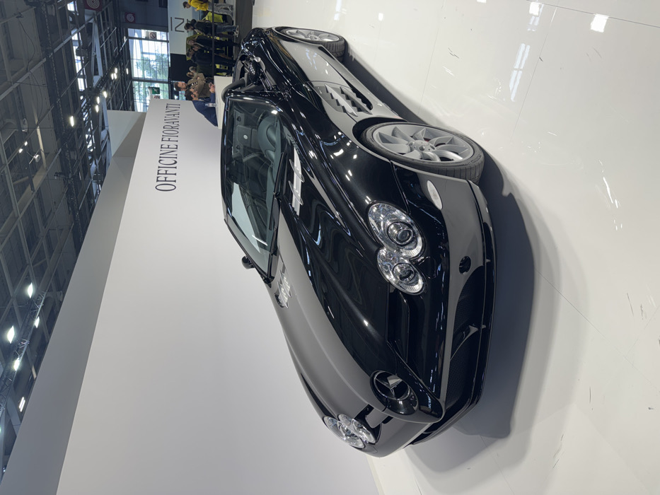 - "The image displays a black Mercedes-Benz SLR McLaren Roadster, presented as an exhibit within an indoor automotive show" by FM-vvp7l1, licensed under CC BY 4.0