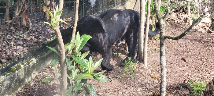 - "An adult melanistic big cat, consistent with a black panther, is depicted within an outdoor enclosure in Saint-Mandé, France" by FM-u2OAj2, licensed under CC BY 4.0